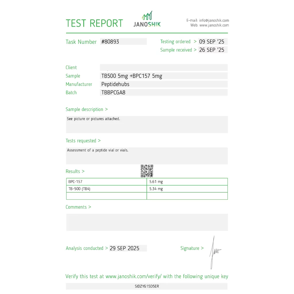 Just came across a lab test for Peptide Hubs TB-500 / BPC-157 blend (5 mg / 5 mg) and figured I’d post it here for those tracking peptide accuracy.